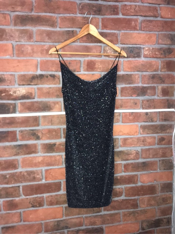 Bu siyah elbise, ince askılar ve V yakası ile dar kesimlidir. Boncuk işlemeleriyle göz alıcı, romantik akşamlar için uygun. ✨