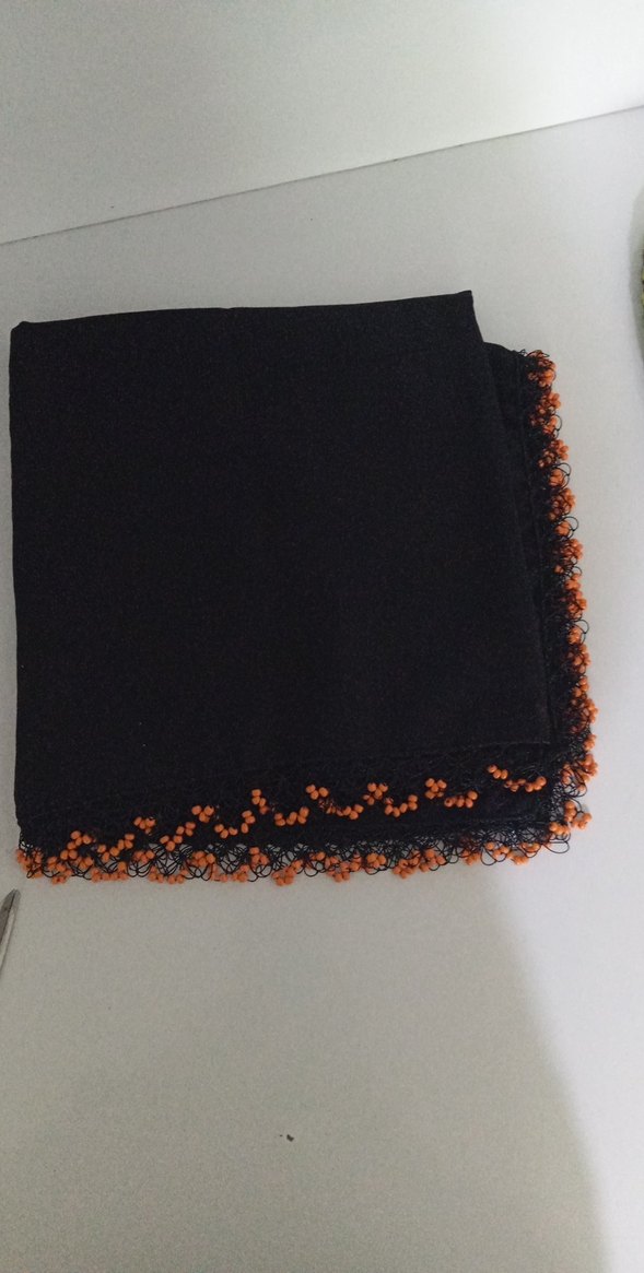 Koyu tonlarda boncuk işlemeli kenarlarıyla siyah yazma