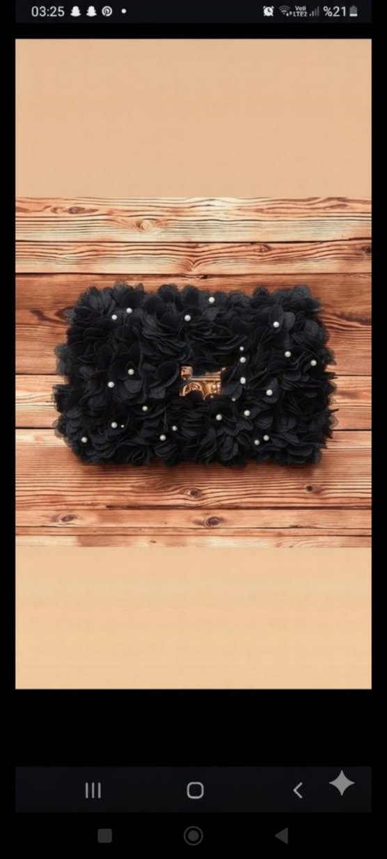Siyah örgü kumaştan yapılmış, boncuk işleme detaylı ve çiçek desenli kadın çantası. Düğünler için uygun, gotik ve bohem tarzları Paris dokunuşuyla birleştirir.