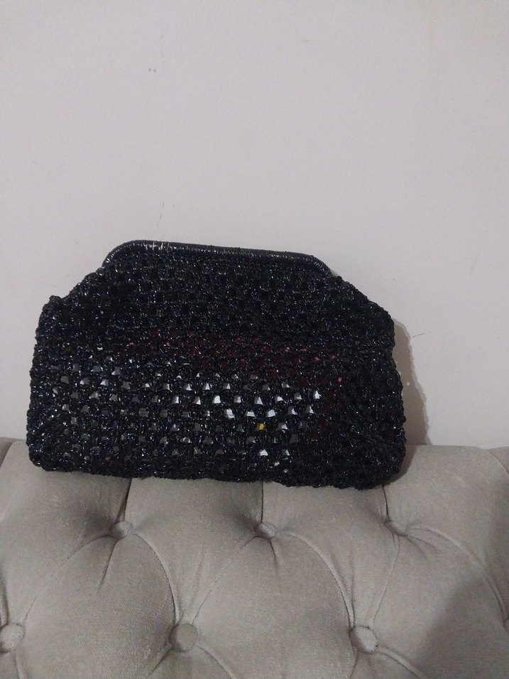 Boncuk İşlemeli Siyah Örgü Kadın Portföy Çanta