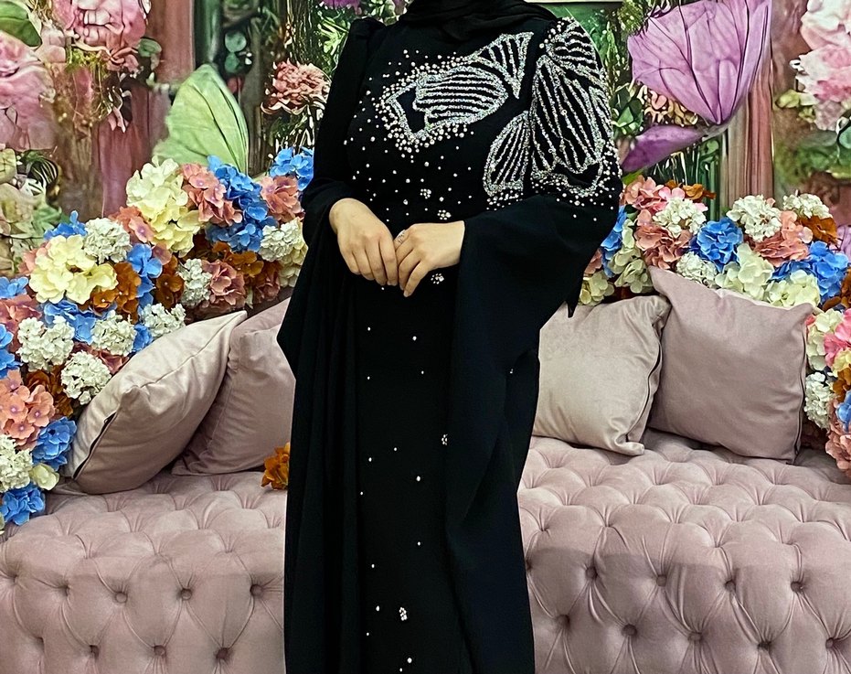 Boncuk İşlemeli Siyah Tesettür Abiye Elbise