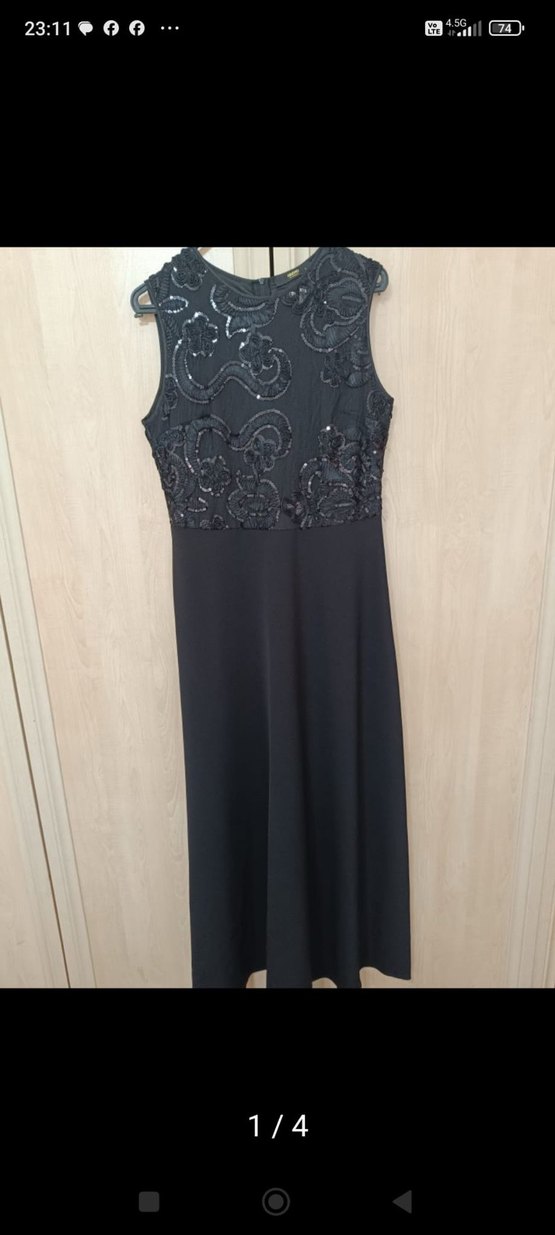 Boncuk işlemeli ve nakış detaylı siyah uzun abiye elbise, kolsuz ve regular fit olup straplez yaka ile klasik ve gösterişli gotik tarzı yansıtıyor.