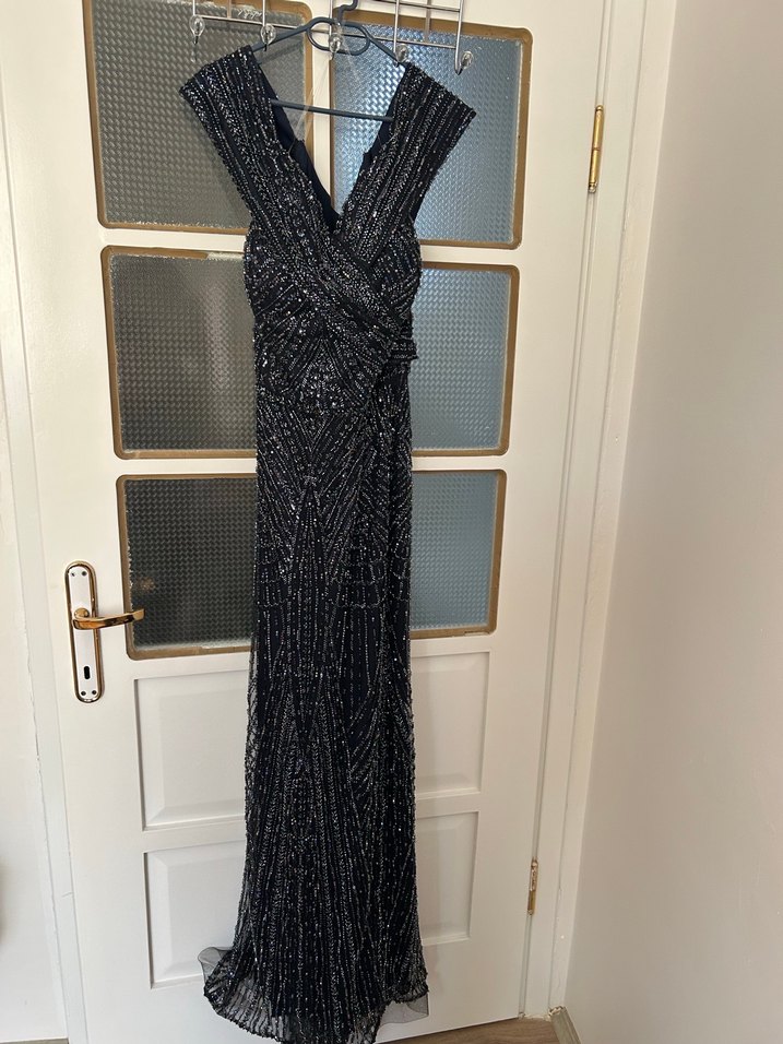 Boncuk İşlemeli Siyah Uzun Büyük Beden Abiye Elbise