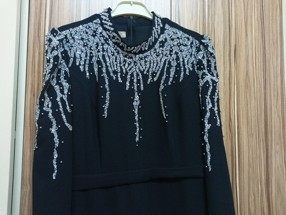 Boncuk İşlemeli Siyah Uzun Abiye Elbise