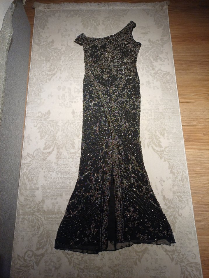 Boncuk İşlemeli Siyah Uzun Abiye Elbise