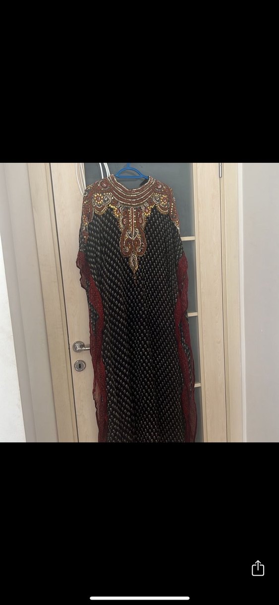 Boncuk İşlemeli Siyah Uzun Elbise Arap pelerin