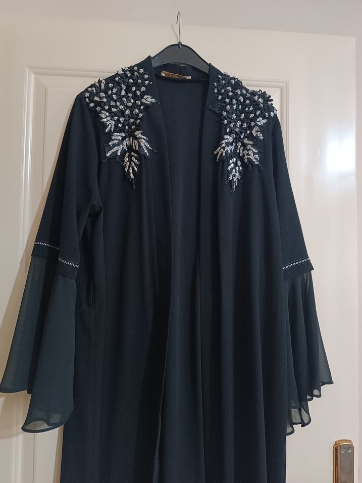 Boncuk İşlemeli Siyah Uzun Kadın Abaya