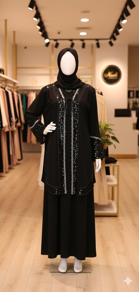 Son fiyat Sefa Merve markalı İçli dışlı Siyah, uzun kollu, yüksek yakalı ve boncuk işlemeli bu tunik içli dışlı takım olarak üretilmiştir. Günlük kullanıma uygun, mütevazı ve gösterişli bir tasarıma sahiptir