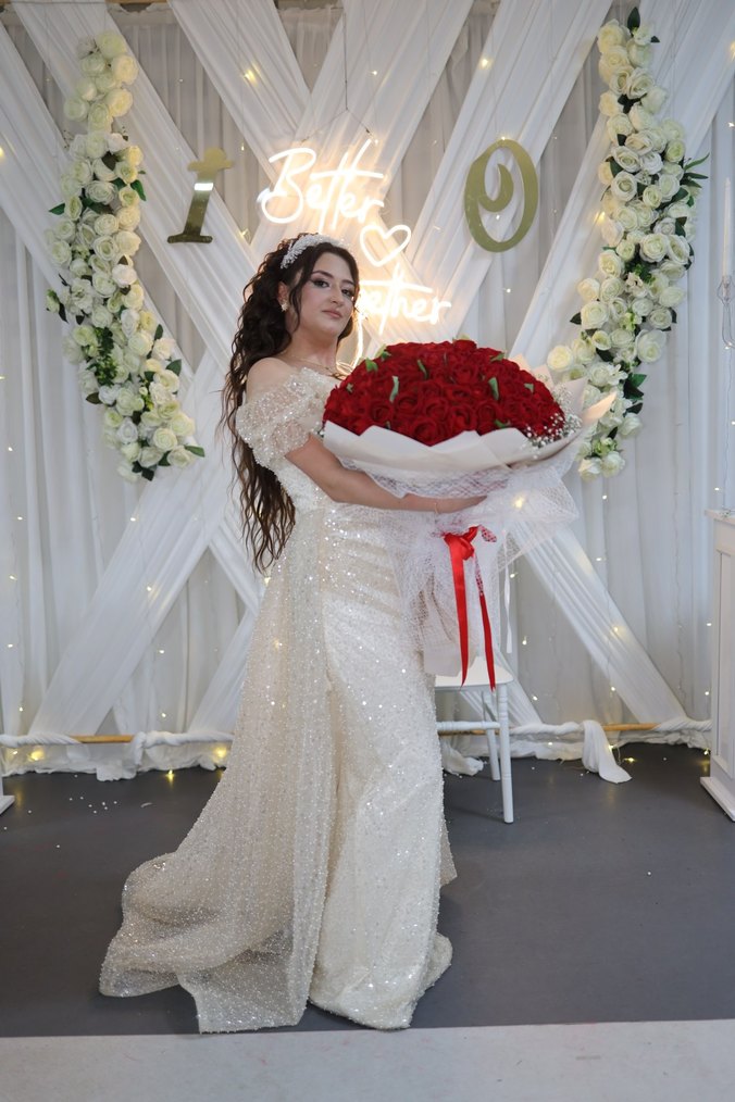 Boncuk İşlemeli Straplez Midi Nişanlık ,Söz,Nikah