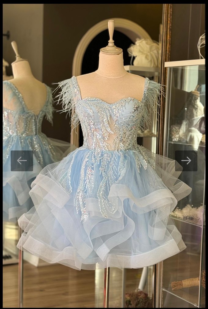Boncuk işlemeli, işlemeli ve straplez mini abiye elbise. Kolsuz ve kat kat etekleriyle bohem tarzda, partiler için ideal. ✨