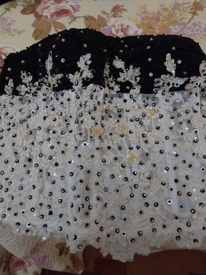 Boncuk işlemeli ve nakış desenli, uzun ve straplez, kolsuz, bohem tarzda, şık ve vücuda oturan abiye buliz