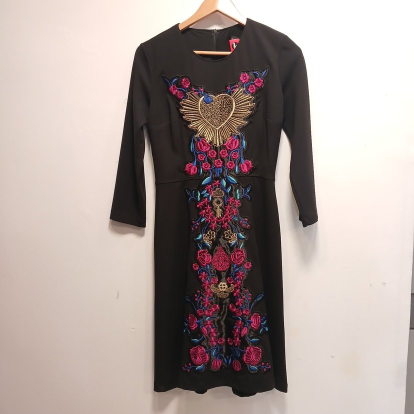 Boncuk işlemeli, uzun kollu ve vücuda oturan bu elbise, bohem tarzıyla dikkat çeker. Çiçek ve kalp desenleri romantik akşamlar için uygundur.