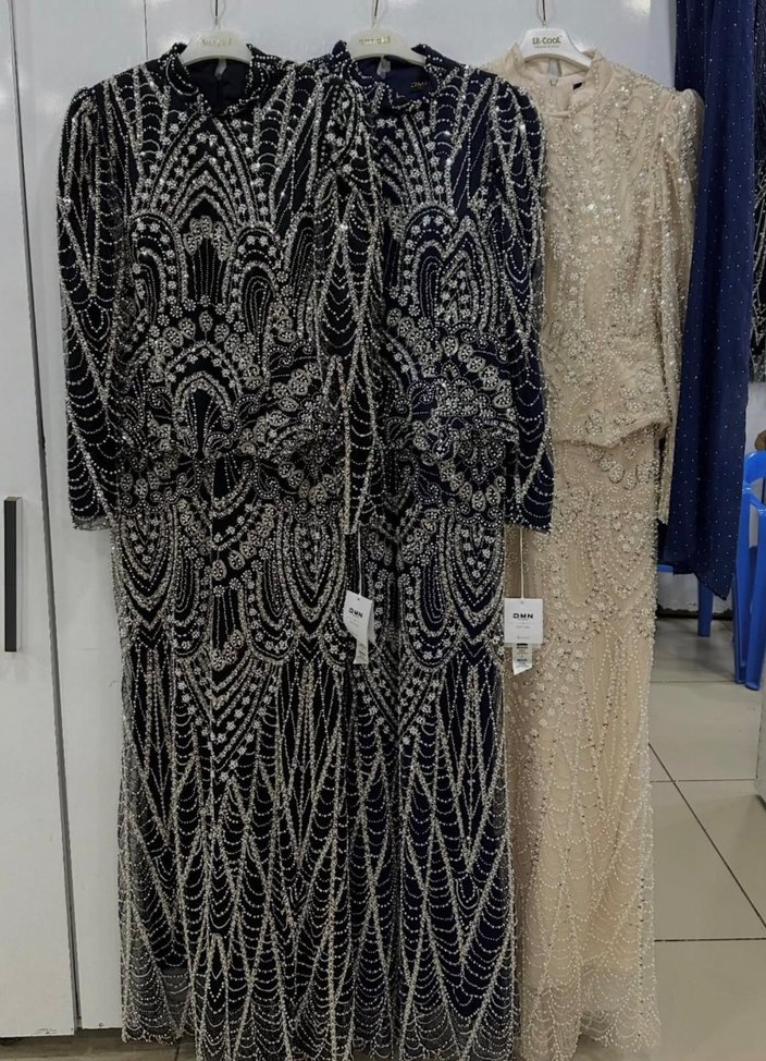 Boncuk İşlemeli Uzun Kollu Kadın Abiye Elbise