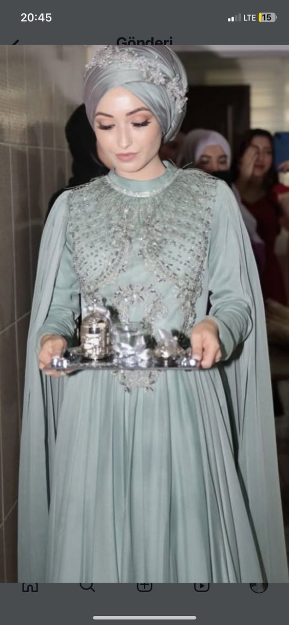 Boncuk İşlemeli Uzun Kollu Tesettür Abiye Elbise
