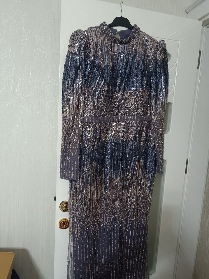 Boncuk İşlemeli Yılan Desenli Uzun Abiye Elbise