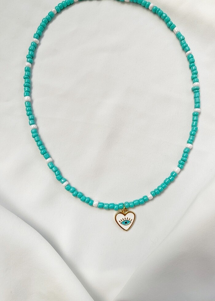Ürün el yapımı olup altın kaplama aparatlar kullanılmıştır. Kolye uzunluğu isteğinize bağlıdır.