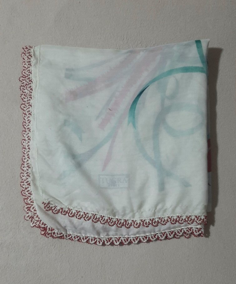 Boncuk oyalı 90x90 ölçülerinde az kullanılmış yazma.