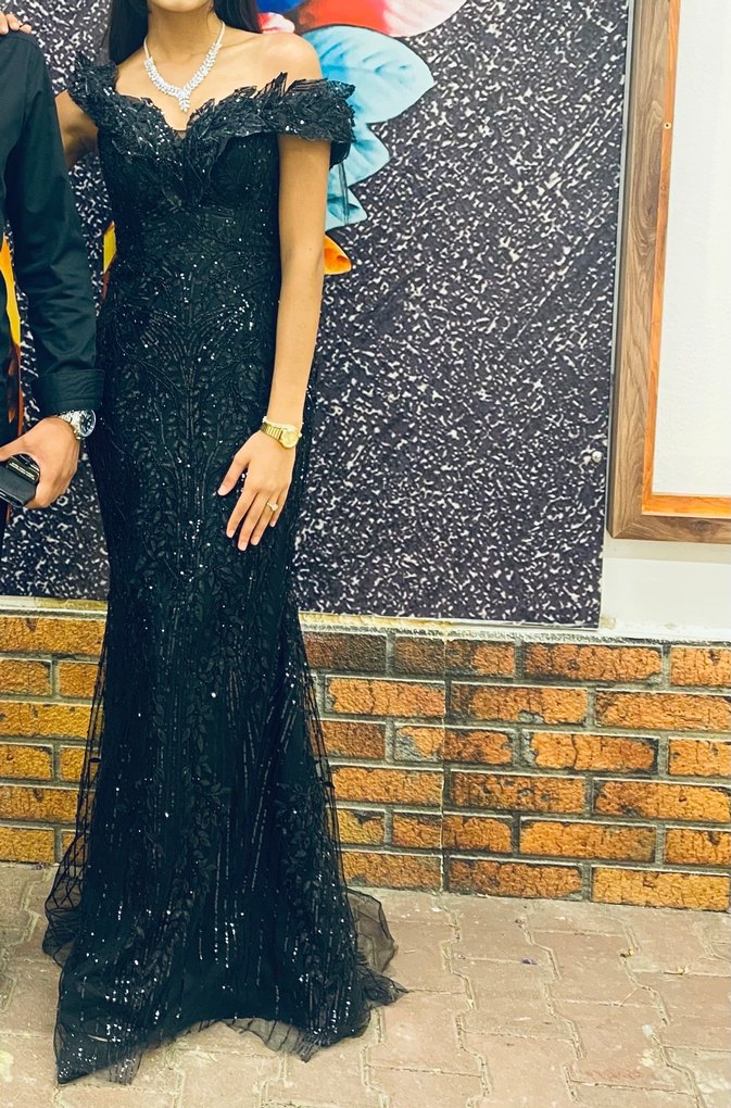 Sadece iki kez giyildi 36 38 beden uyumlu kusursuz Boncuk işlemeli, desenli ve kolları üç boyutlu siyah uzun abiye elbise. Tekne yaka ve vücuda oturan kesimiyle şık ve gösterişli.