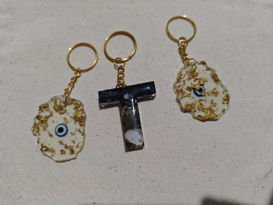 Boncuklu Altın Renk Bohem Anahtarlık epoksi