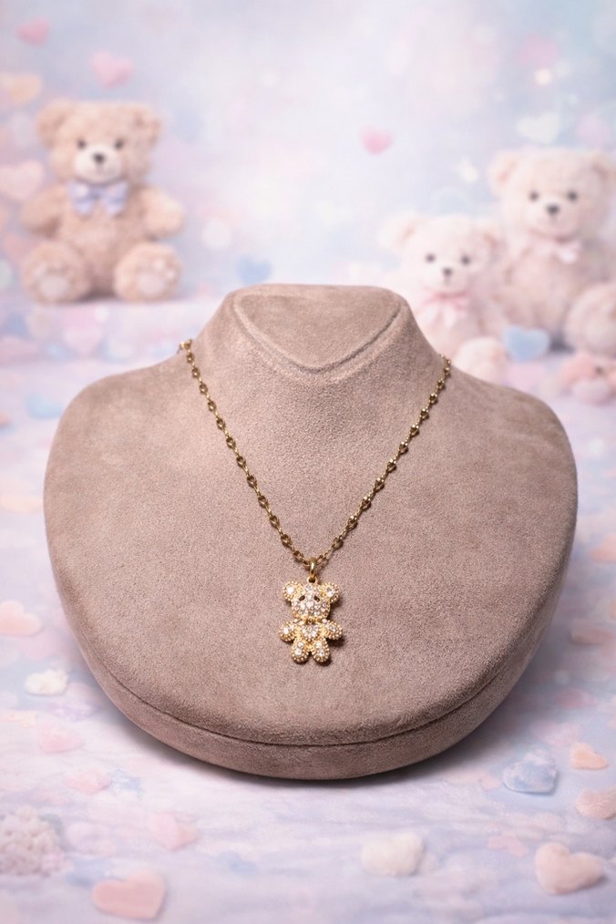 Boncuklu Altın Renkli Ayıcık Kolye