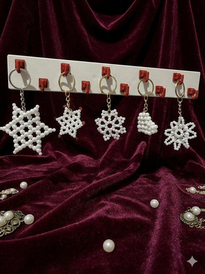 Bohem ve retro esintili, beyaz boncuklu farklı tasarımlarda kadın anahtarlık seti. Ürün fiyatı için yazınız El emeği göz nurudur