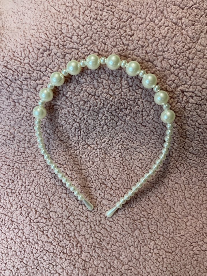 Bej renkli, boncuklu örgü kumaştan yapılmış saç tacı, bohem ve rahat bir stil sunar. Retro, hippie görünüm için uygundur.