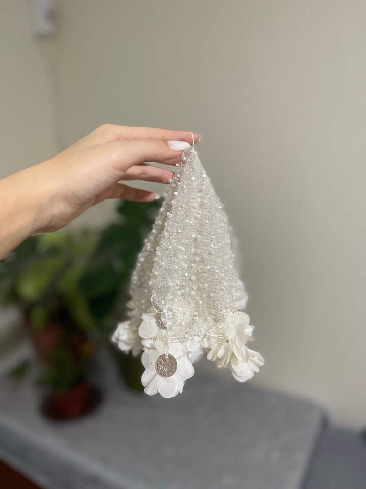 Boncuklu Beyaz Bohem Düğün Aksesuarı