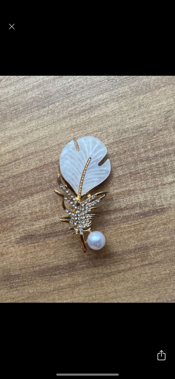 Boncuklu Beyaz Çiçek Desenli Broş