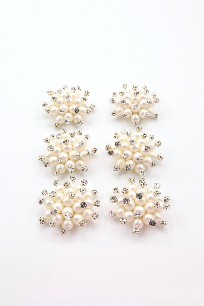 Boncuklu Beyaz inci broş ( 6 adet )