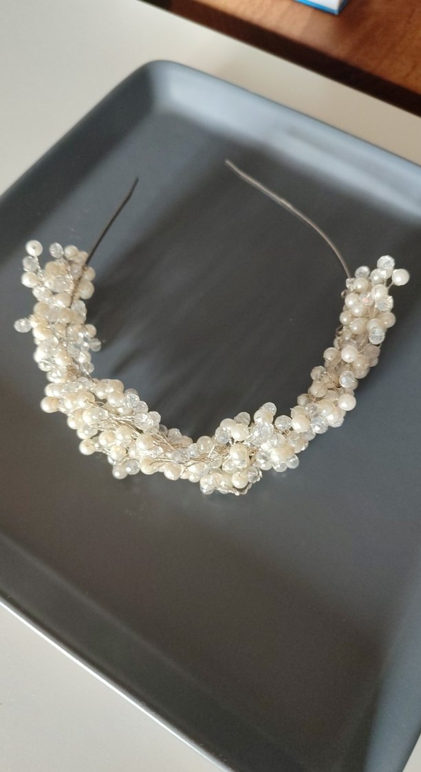 Boncuklu Beyaz Örgü Saç Aksesuarı gelin tacı