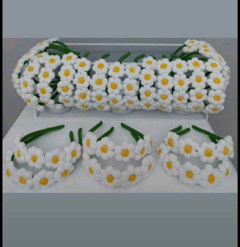 Boncuklu Beyaz Papatya Desenli Çocuk Saç Bandı
