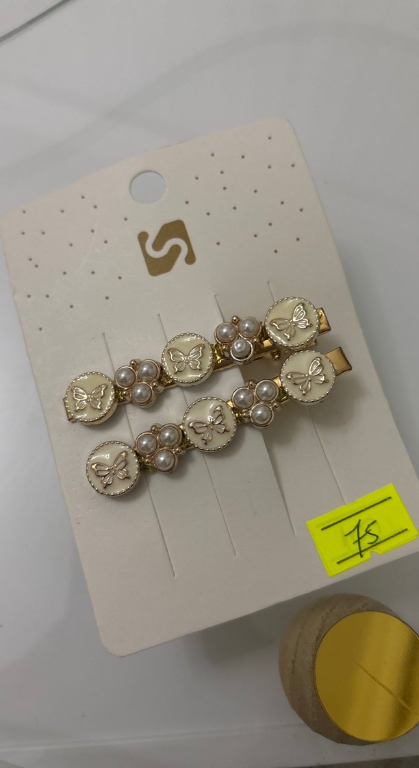 Boncuklu ve kelebek detaylı beyaz saç tokaları, vintage bohem tarzını yansıtır. Plastik malzemeden üretilmiştir, retro görünüm için uygundur.