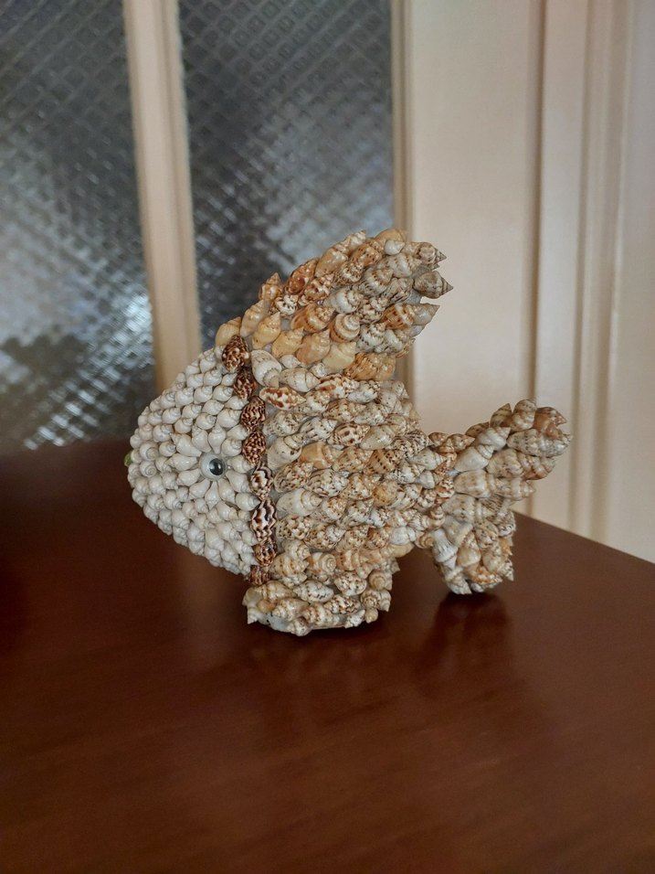 Boncuklu detaylara ve bohem tarzda, açık kahverengi tonlarında balık biblo. Vintage görünümü ve bohem temalar için uygun.Birkac parça düşmüş fotolarda gözüküyor.