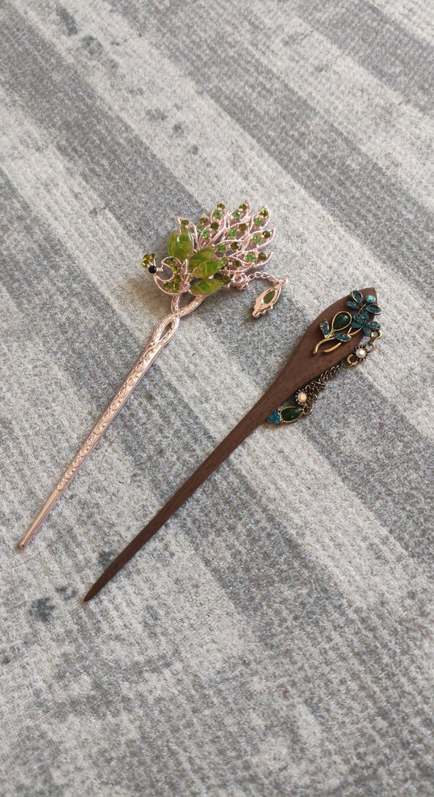 Boncuk detaylı, koyu kahverengi tonlarda, örme kumaştan yapılmış iki vintage tarzı saç tokası. Bohem ve retro stiller için uygundur. yurtdışından alinmistir