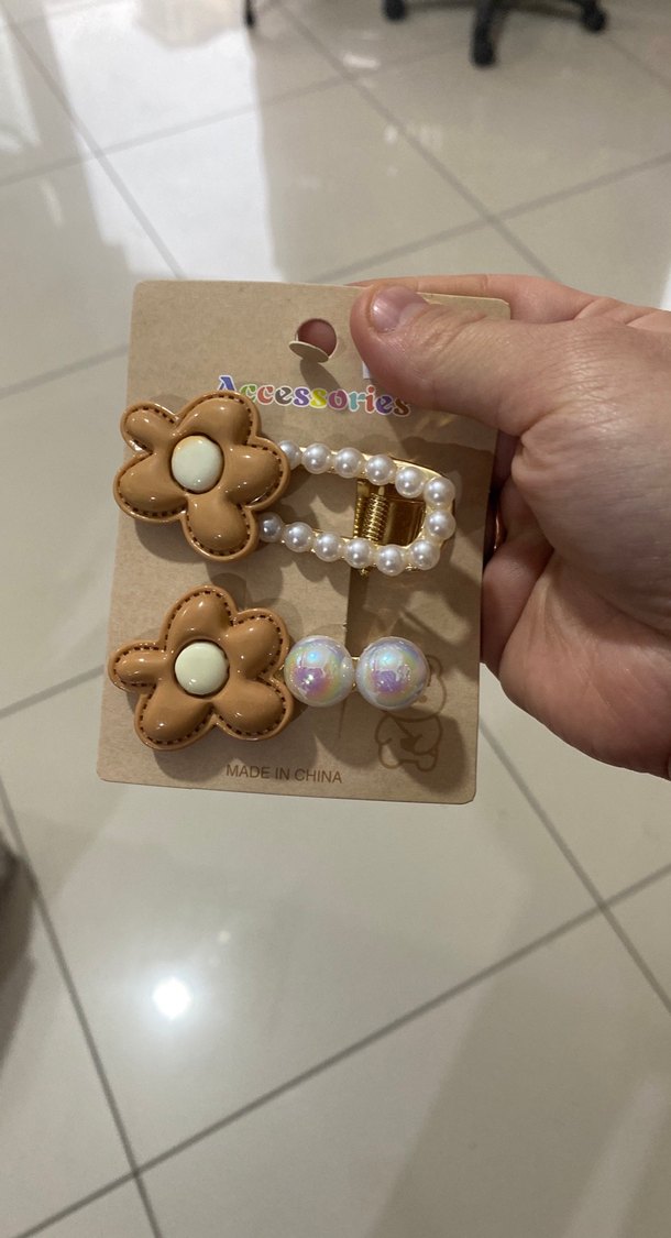Boncuklu Çiçekli Bej Çocuk Toka Seti
