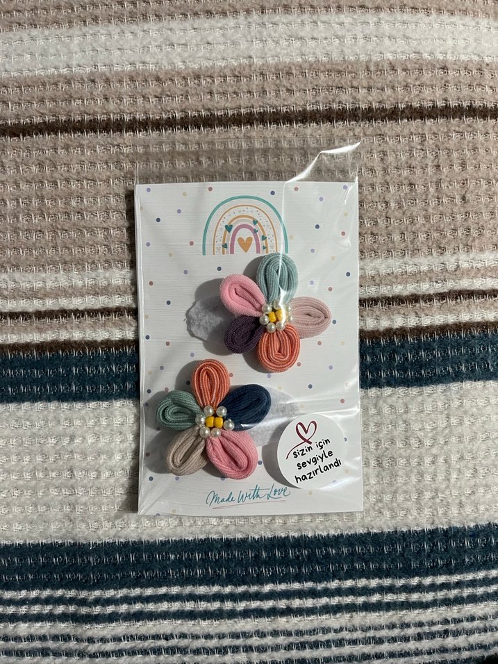 Pastel renklerde boncuklu çiçek figürlü iki adet saç tokası. El yapımıdır.