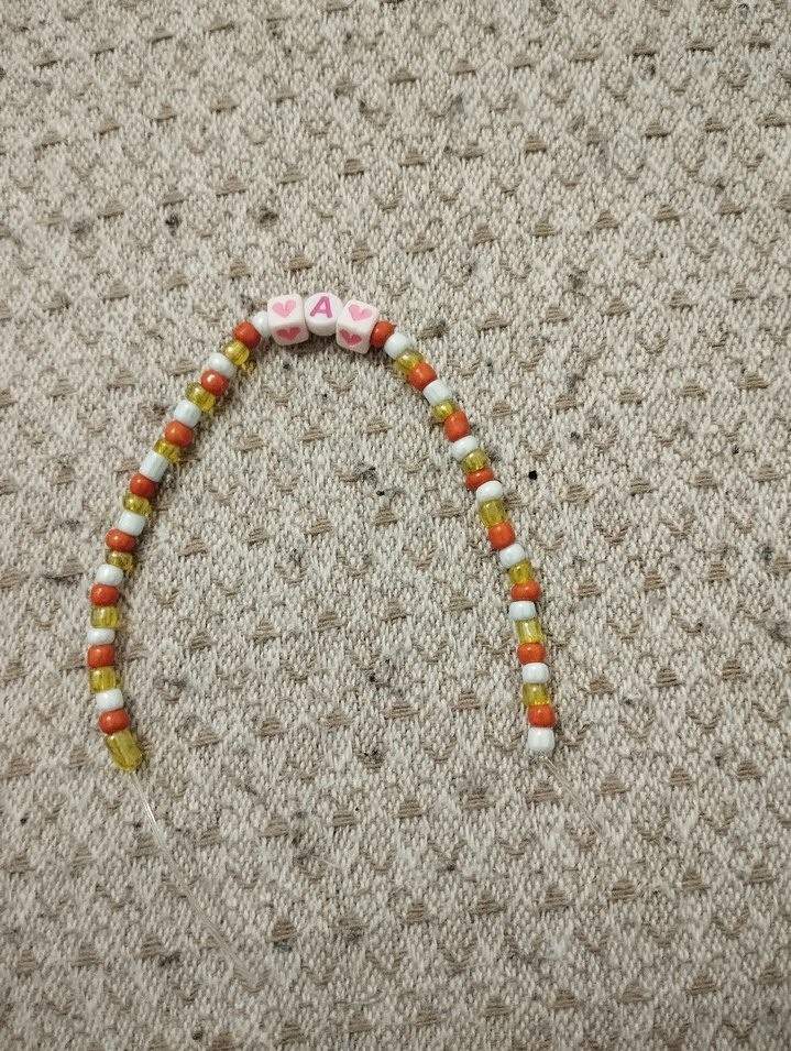 Boncuklu, çok renkli nakış desenli ve bohem tarzda günlük kullanıma uygun bileklik. Kalp ve harf boncukları yumuşak ipte yer alır.