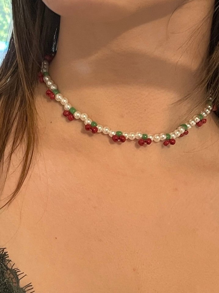 Boncuklu, çok renkli ve nakış detaylı bohem tarzda midi uzunlukta kadın kolyesi, parti için uygun.