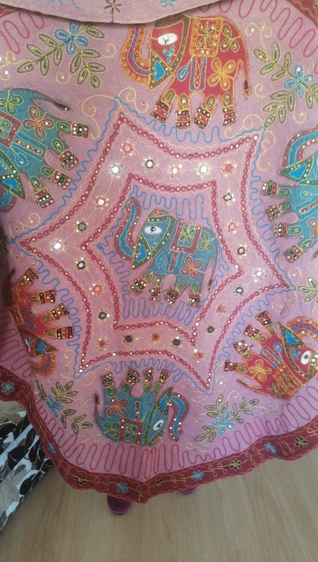Kadın şalı, pastel çok renkli tekstil ve boncuklu detaylarla bohem, hippie tarzını yansıtıyor.