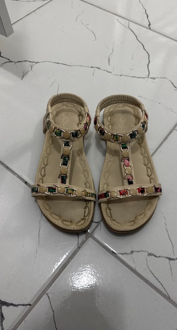 Kadınlar için çok renkli boncuk işlemeli , lastik malzemeden yapılmış dolgu topuklu sandaletler, günlük kullanım için uygundur.