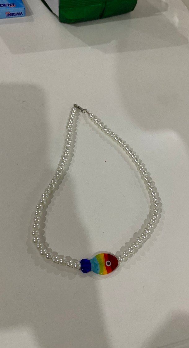 Boncuklu ve çok renkli balık figürlü bu kadın kolyesi, bohem ve minimalist tarzı yansıtır. Normal midi uzunluğu günlük kullanıma uygundur. Arkadaşlar olırsanız çok sevinirim daha bir tane bile satamadım hepsini kendim yapıyorum