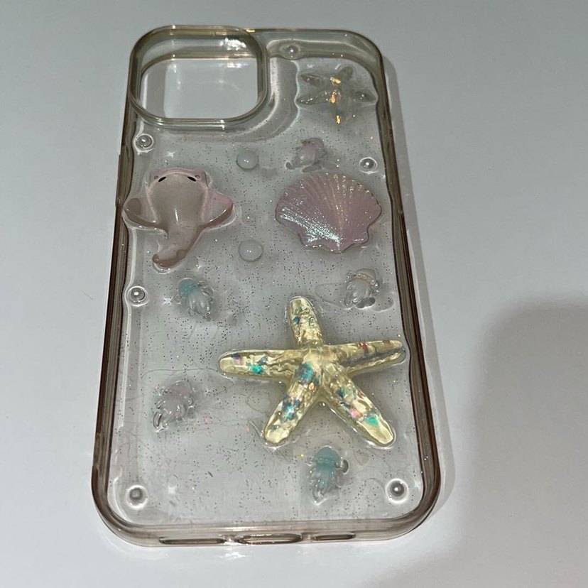 Işıltılı deniz temalı boncuklarla süslenmiş çok renkli telefon kılıfı, bohem tarzda.