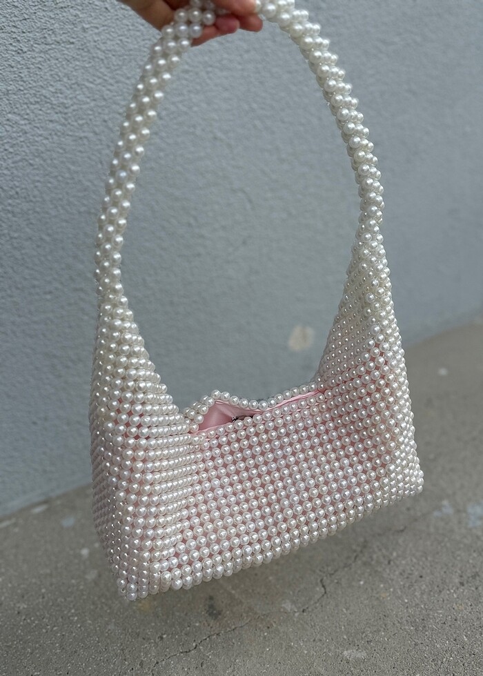 Beyaz inci Boncuklu çanta