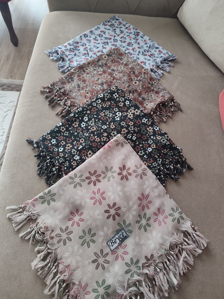 Çiçek desenli ve dantel detaylı, yumuşak ve rahat bohem tarzı kadın atkıları, çeşitli renklerde.