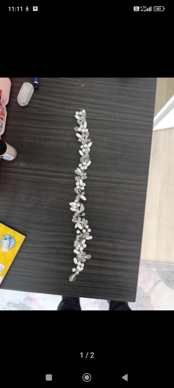 hiç kullanılmadı. Gri metalden yapılmış, boncuklu çiçek desenleriyle minimalist ve bohem tarzı yansıtan saç aksesuarı.