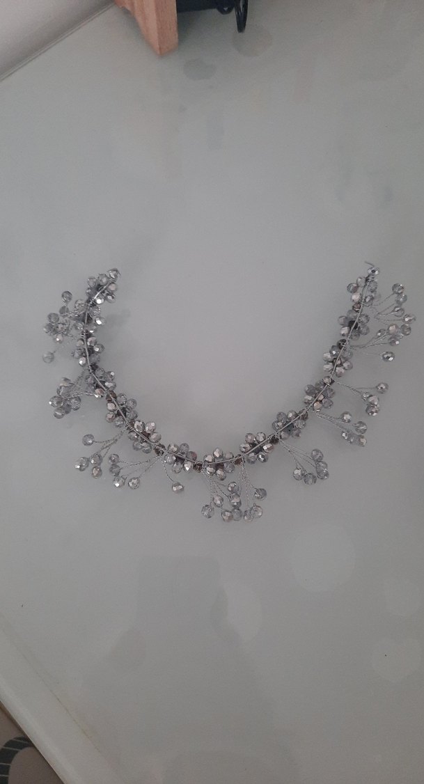 Boncuklarla süslenmiş, gri metalden yapılmış modern saç aksesuarı. Parlak ve bohem tarzı yansıtır, retro ve hippie görünüme uygundur. ✨
