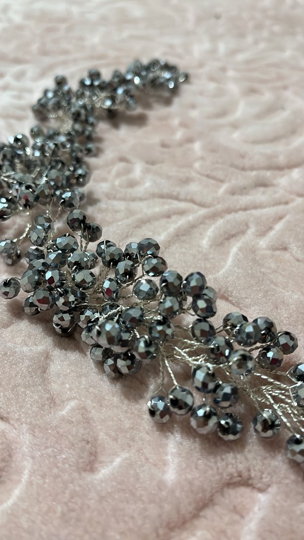 Boncuklu detaylara sahip gri örgü saç ve türban aksesuarı, göz alıcı, gotik ve bohem tarzları yansıtır. ✨
