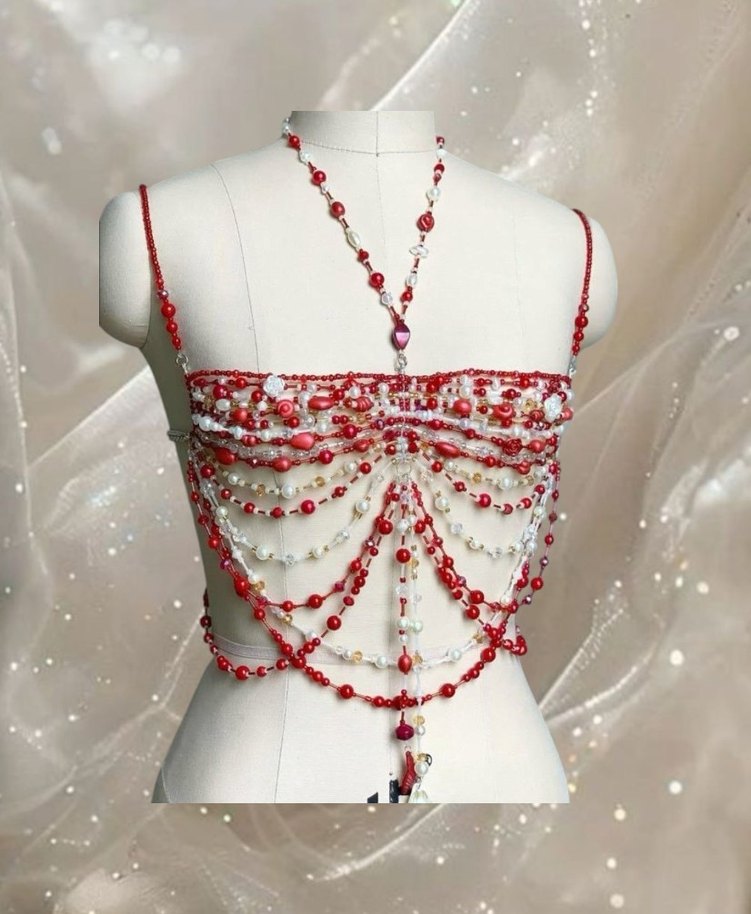 Boncuklu Kırmızı Kadın Vücut Zinciri