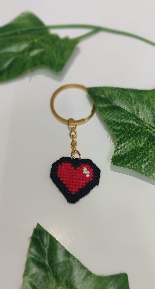 Altın halkalı, boncuk işlemeli kırmızı kalp anahtarlık. ❤️(el yapımı sıfır)