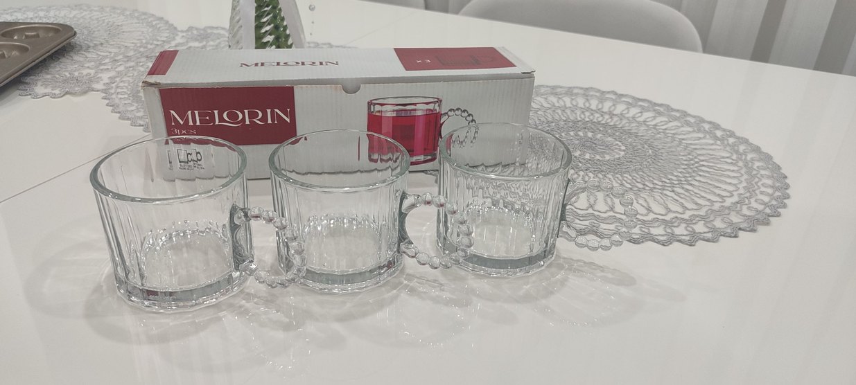 Boncuklu kulplu cam Kupa hiç kullanılmadı paketlidir.